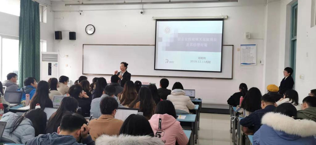 随后,刘明辉教授从入职门槛,职业待遇和职业中断三个角度讲授分析了上述现象的主要原因,入职门槛主要包括制度性与观念性的障碍,职业待遇包括同工同酬与晋升渠道,职业中断的主要原因有怀孕排挤和职场性骚扰。然后,讲述探讨了上述现象的改良方法,最后,收集学生问题,回答学生问题,进行了热烈亲切的师生互动问答。
