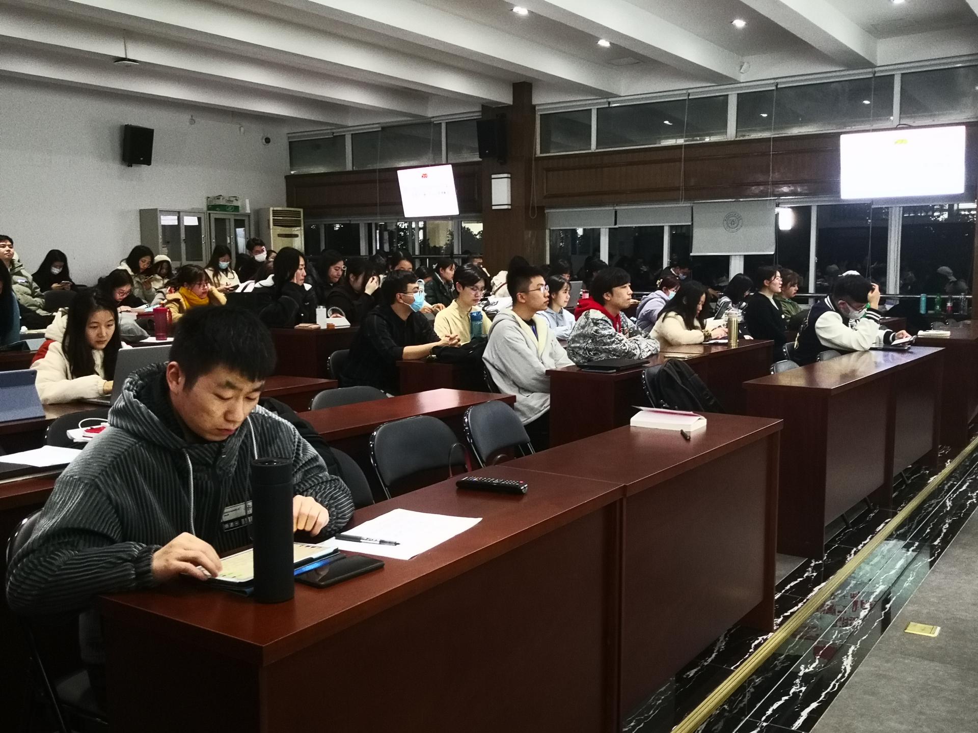 党的十九届六中全会精神解读”主题宣讲。宣讲会由法学院分党委副书记胡建军主持。学院组织员王菲、柳林校区学生党员、第13期预备党员、第105期入党积极分子近100余人参加了本次宣讲学习活动。
