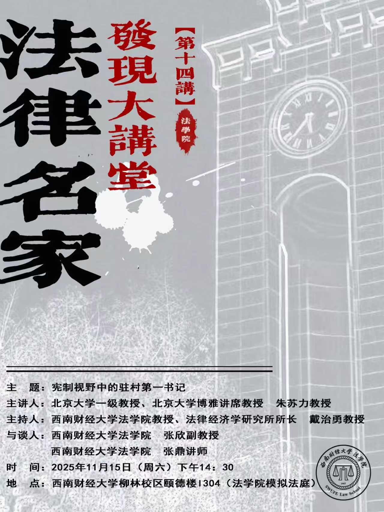 【法律名家】发现大讲堂第14讲 北京大学朱苏力教授--宪制视野中的驻村第一书记