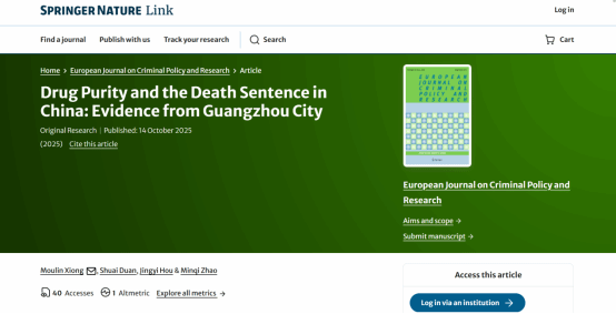 近日,熊谋林教授带领2021级本科生段帅和后静怡同学,与成都行政学院赵敏奇博士合作完成的论文《Drug Purity and Death Sentence in China: Evidence from Guangzhou City》,正式在线发表于国际知名SSCI期刊《European Journal on Criminal Policy and Research》。文章借助于广州市中级人民法院的实证资料,向全世界展示和证明中国真正将纯度与重量相结合运用在死刑控制中,充分论证了中国刑事法治的有益经验和先进性。