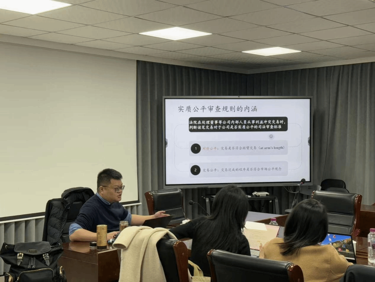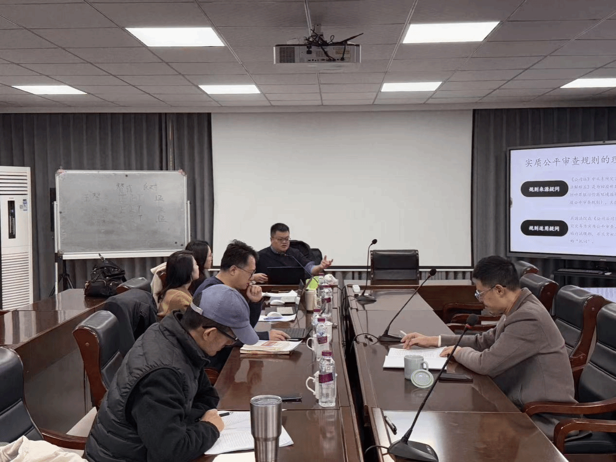 2025年11月18日上午,我院杨秋宇老师工作论文汇报会在通博楼C420会议室顺利举行。此次汇报会的论文题目是《董事利益冲突交易实质公平审查规则之质疑》,由杨秋宇老师作为汇报人,陈彦晶老师、黄丽娟老师、张怀岭老师、王战涛老师和李怡老师五位老师组成点评专家组。