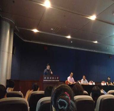 9月10日下午两点,法学院2015级硕士研究生在国际报告厅参加了“法学院硕士研究生入学教育大会”。学院领导和全体老师出席了大会。会上,高晋康院长向同学介绍了对学校、学院的历史,以及学校的变革和学院内部根据学校的培养方案所做的一些改变,希望同学们能够适时而变,成为一个优秀的西财法学人。随后,诉讼法研究所所长彭世忠教授代表老师致辞,向同学们提出了心怀法律情怀、勇于学术创新、脚踏实地学习的期望。在座的每一老师也对新生送去了“多读一本书,多交一个朋友,少缺一次课”、“做有趣的学问,有趣的做学问”等美好而有趣的寄语。随后,王璐璐老师对后期的选课、选导师做了相应的安排。最后,曾宪老师向新同学的介绍了研究生学生工作管理的模式和要求,特别宣传和介绍了学校和学院对困生资助的政策,对大家普遍关心的助学贷款和缓交学费的政策做了解释。