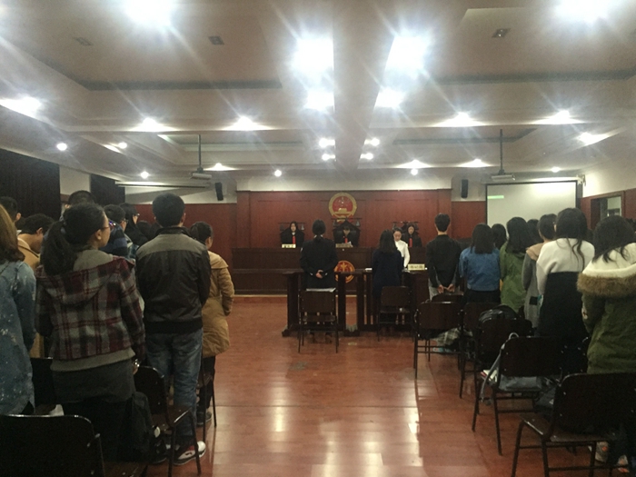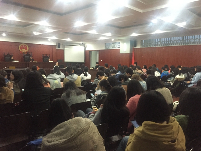 3月25日晚18:30,2014级本科学生在颐德楼I504模拟法庭,以模拟庭审的方式来开展由文海林老师开设的《刑事案例研究》实践课程。此次实践课上,同学们积极参与,通过扮演法官,公诉人,律师,证人等角色,模拟庭审了“被告人胡某某过失致人死亡一案”。模拟庭审中间,控辩双方在审判长的组织下对于相关证据的采纳,罪与非罪之间展开了激烈的争论。最终,模拟的合议庭对于本案做出了无罪的判决。